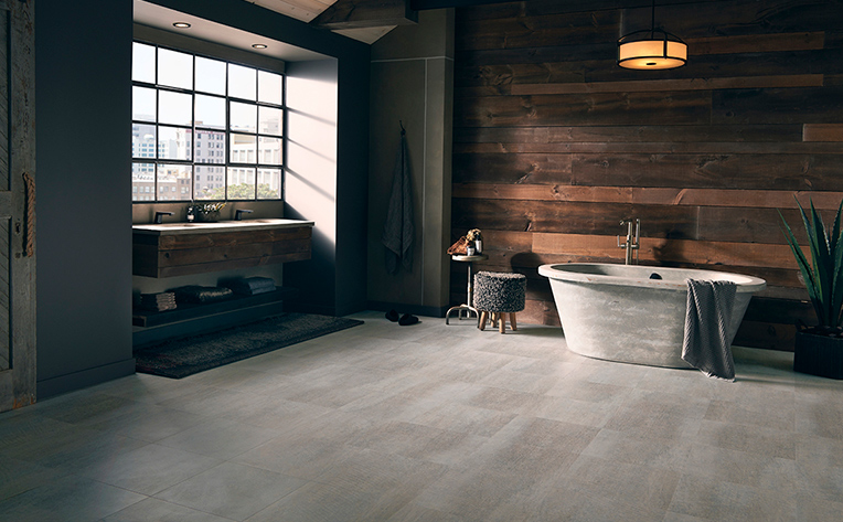 Let’s talk bathrooms. It’s a busy space … and sometimes a chaotic space, so it needs to stand up to the challenge. While you need something durable, waterproof, and probably stain-resistant, too, you also want something beautiful. On its best day, your bathroom should feel more like a spa. Depending on your style preferences, you can get a floor that brings it all together.