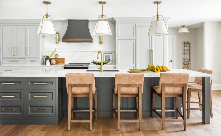 Whether you desire a trendy farmhouse kitchen, a cozy cottagecore style, a sleek minimalist design, or another creative kitchen design, it's important to map out your design goals before your kitchen makeover begins. Research kitchen design ideas, browse our Design Inspiration Blogs, and note any must-have pieces to use as a focal point for the rest of your interior design. Maybe you love the look of wood countertops, a farmhouse sink, a subway tile backsplash, a fancy kitchen island, or have a unique idea for custom cabinetry. When you talk to a designer, explain your desired aesthetic with reference photos to create a unique plan that expresses your personality!