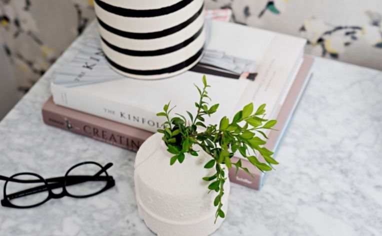 A: It’s all about editing. Be selective and only keep personal items that spark joy. Repeating the color scheme throughout the 3rd floor creates a cohesive look and makes the space feel calm. You don’t need to have an all-white space in order to feel simple and clean.
