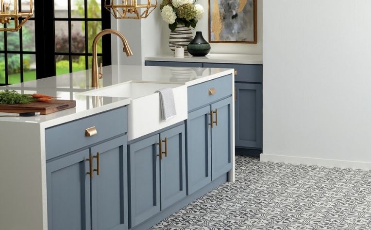 When it comes to putting it down, vinyl keeps things simple. Peel-and-stick vinyl is a great option if you’re looking for an affordable, DIY-friendly project—it sticks right over your subfloor or existing flooring. For something more durable and longer-lasting, luxury vinyl tiles (LVT) and planks (LVP) offer a thicker, sturdier feel and click together easily for a floating floor that lasts. Both options are low-maintenance, scratch-resistant, and built to handle the chaos of a busy kitchen. Luxury vinyl flooring offers waterproof options that offer greater peace of mind and are longer-lasting. With vinyl, you’re getting a flooring solution that’s as hardworking as your home—and as stylish as you want it to be.
