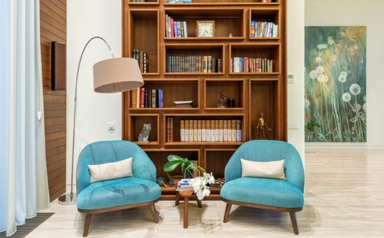 Ambient lighting provides a warm glow to the room that’s softer than harsh, overhead lighting and gives a diffused lighting look. Adding ambient light to a room will make your floors, couches, and other furniture come together and feel more welcoming.