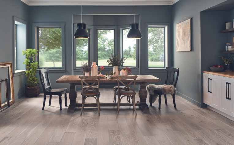 Topped with a thin layer of natural wood, engineered hardwood delivers solid hardwood's authentic look and feel in a wide range of styles, colors, and wood species. Whether you prefer the rustic charm of hickory, the classic warmth of oak, or the modern appeal of gray ash, engineered hardwood gives you plenty of options to match your style.