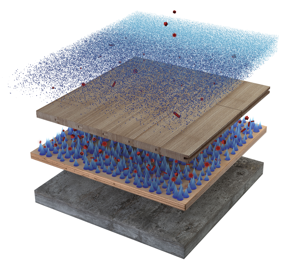 We place a layer of antimicrobial protectant between your subfloor and floor, with nanospikes that prevent mold, fungi and bacteria.